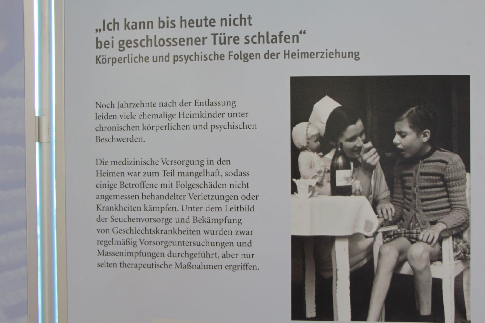 In Baden-Württemberg existierten zwischen 1949 und 1975 über 600 Säuglings-, Kinder- und Jugendheime. Die Ausstellung bietet einen Einblick, wie der Alltag in vielen Kinderheimen aussah. Bildmaterial, Dokumente, Bilder und Aktenauszüge geben Aufschluss darüber. Das Ziel der Ausstellung ist es, das Thema Heimerziehung in Baden-Württemberg aufzuarbeiten, aufzuklären sowie Transparenz zu schaffen. "Den Jungen und Mädchen, die Gewalt und Missbrauch in Heimen miterleben mussten, wird hiermit eine Stimme gegeben," so Dr. Christof Strauß vom Staatsarchiv Freiburg.