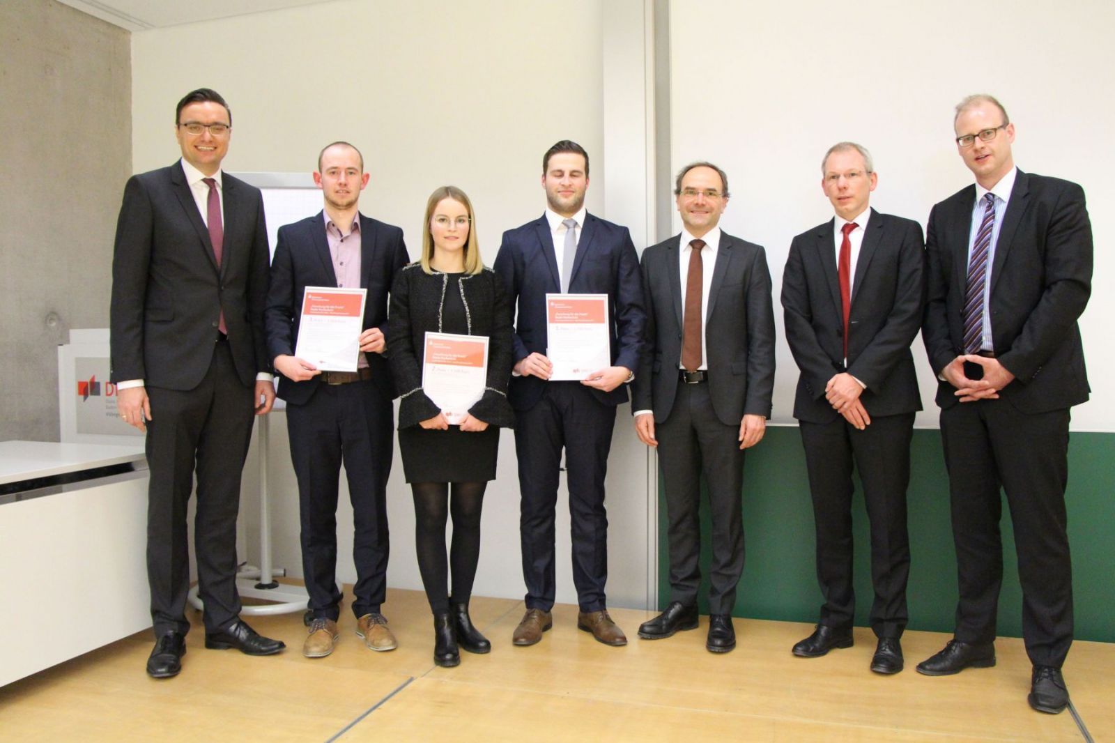 Drei Absolventen des Studiengangs BWL-Bank wurden in einem feierlichen Rahmen für ihre herausragenden Bachelor-Arbeiten ausgezeichnet. Unter dem Motto „Forschung für die Praxis“ wurden Arbeiten ausgewählt, die einen starken Praxisbezug und-nutzen aufweisen. Das Preisgeld in Höhe von insgesamt 5.000 Euro wurde nun bereits zum fünften Mal von der Sparkasse Schwarzwald-Baar gestiftet. „Bei den prämierten Arbeiten wird deutlich, wie das an der DHBW vermittelte Wissen unmittelbar in der Praxis genutzt werden kann und welch hervorragende Berufsbefähigung unsere Absolventen haben“, betonte Prof. Dr. Marcus Vögtle in seiner Ansprache. Nach den beeindruckenden Präsentationen der drei Preisträger überreichte Florian Klausmann, stellvertretendes Vorstandsmitglied der Sparkasse Schwarzwald-Baar, die Urkunden und das Preisgeld. „Es ist wichtig, dass Ideen entwickelt werden, die uns in der Praxis helfen und eine klaren Mehrwert bringen. An diesem Konzept wollen wir festhalten“, betonte Florian Klausmann.