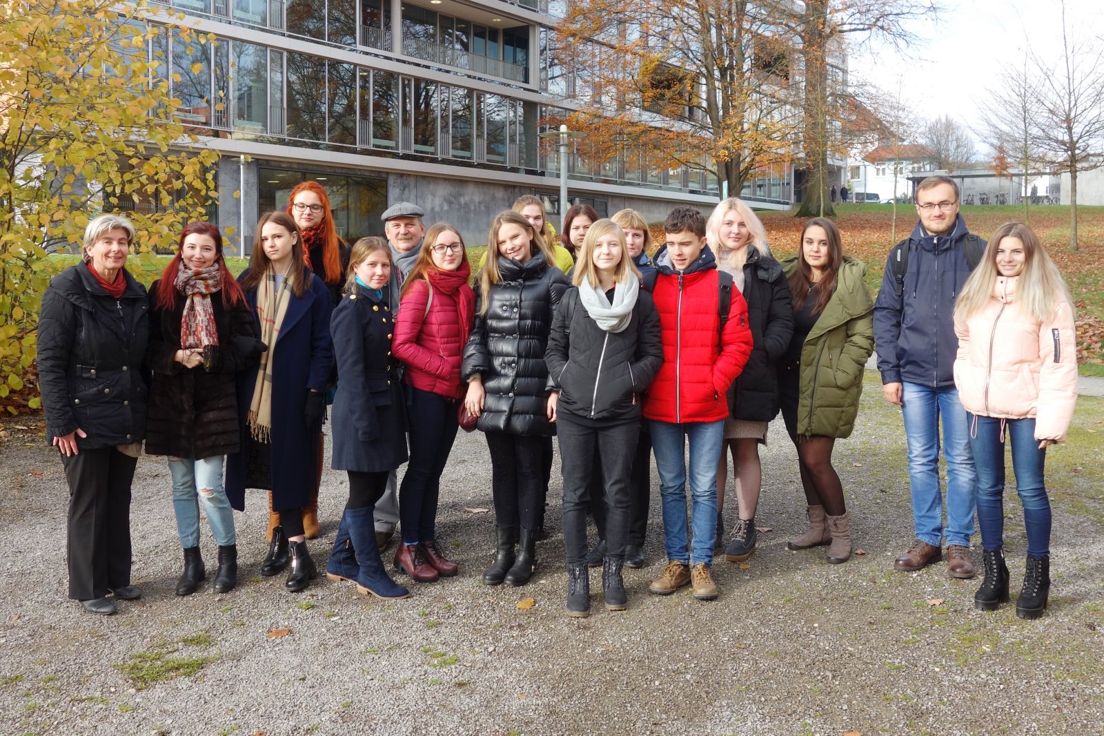 Eine Gruppe von zwölf Studierenden, Schülerinnen und Schülern aus der russischen Partnerstadt Tula war mit ihren beiden Begleitern Prof. Alexander Bogatov und Elena Divavina zu Besuch an der DHBW Villingen-Schwenningen. Die Gruppe arbeitet mit Schülern der Oberstufe vom Gymnasium am Romäusring in Villingen am gemeinsamen Projekt „Krieg und Frieden heute“ und kam dazu für eine Woche zu Besuch. Durch die langjährige Kooperation mit der Leo Tolstoi Universität in Tula nutzte die Gruppe die Gelegenheit, sich über das Duale Studium und ein Auslandssemester an der DHBW Villingen-Schwenningen zu informieren. Claudia Rzepka vom International Office stellte das duale Studienmodell vor und beantwortete Fragen zur Kooperation und den Auslandsprogrammen. Dabei zeigten die jungen Russen großes Interesse am praxisorientierten Studium und am Studierendenaustausch. Ihre Kommilitonen Ilona Ilicheva und Dmitry Tsarev, die noch bis Jahresende ein Semester an der DHBW Villingen-Schwenningen absolvieren, berichteten über ihre Erfahrungen an der Hochschule und über das Leben in Deutschland. Beeindruckend waren die sehr guten Deutschkenntnisse der russischen Besucher, die sich sehr über eine abschließende Einladung in die Mensa freuten. Zwei der Teilnehmer werden im Frühjahr zu einem Studiensemester nach Schwenningen kommen.