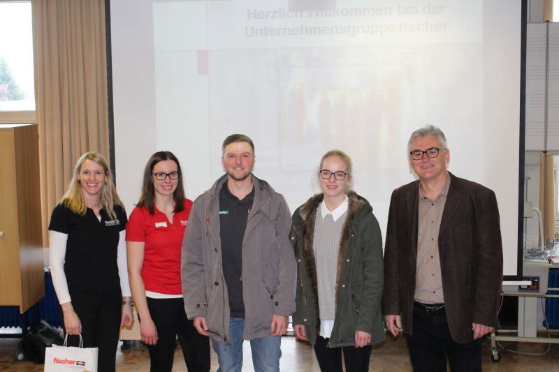 Die Leiter des Studiengangs Industrie sind regelmäßig vor Ort an Partnerschulen, um über das Studienangebot an der DHBW Villingen-Schwenningen zu informieren. Am 7.2.2017 war Prof. Dr. Giesler an einem Berufsinformationstag an der Eduard-Spranger-Schule in Freudenstadt und informierte insbesondere über die Studiengänge an der Fakultät Wirtschaft der DHBW-VS. Tatkräftig unterstützt wurde er dabei von 2 Studierenden des 3. bzw. 4. Semesters: Lea Eberhardt und Fabien Kieninger (im Bild 2. und 3. von rechts). Gerade die beiden Studierenden konnten den Schülern Informationen aus dem studentischen Alltag an der Hochschule sowie im Ausbildungsbetrieb vermitteln. Ebenfalls auf dem Bild: Vertreter unseres Dualen Partners fischer aus Waldachtal, die in einer separaten Infoveranstaltung über das Angebot des Unternehmens informierten.