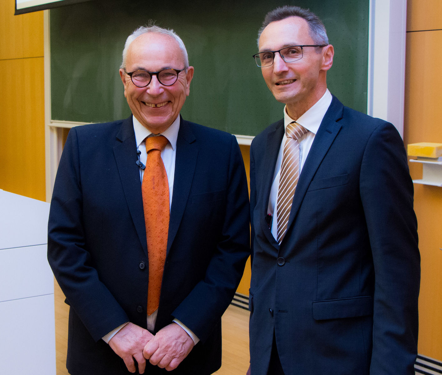 Im vollbesetzten Hörsaal Gutenberg herrschte während des spannenden Vortrages von Bernd Behnke absolute Ruhe. Drei Verhandlungstage pro Woche waren über eine Prozessdauer von fünf Jahren und zwei Monaten bis zur Urteilsverkündung angesetzt. Das Verfahren in dem fünf Berufsrichter, drei Ersatzrichter und über 50 Anwälte beteiligt waren ist jedoch noch nicht abgeschlossen. Es befindet sich in Revision.